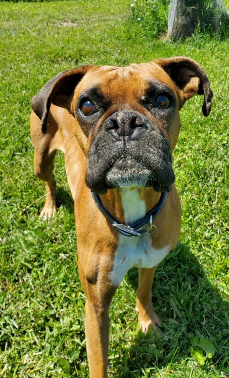 Willie came to us on November 12, 2018 from the NB SPCA. He was very cold and thin. He is a Boxer mix who was born about November 13, 2016. Willie was very fortunate to have lots of people to care for him while he acclimatized to a home that gave him love, attention and friendship. After receiving all medical care required, including neuter and vaccines . . .. . . on January 25, 2019, Willie went to his new home in Dow Settlement where he'll live happily every after. This is one happy, fortunate little Boxer, and he knows it! As do we all. Thanks to all who had a hand in changing his life forever. Congratulations, Willie!