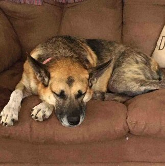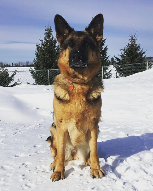 Gabby came to us on August 22, 2018 from Peel, NB. She had some internal problems, including foreign bodies in her belly. She was dehydrated, painful and had diarrhea. Gabby is a German Shepherd who was born about August 9, 2015.Gabby underwent medical care and has improved significantly. She hopes to have a new home soon and is looking forward to her very own family again. Gabby knows some basic commands and loves to go for walks. She also loves to chase snowballs and pounce in the snow. She loves people and loves food! She also loves her Kong toy and will carry toys around with her.On April 6, 2019, Gabby was elated to begin her journey to her new home in Halifax where she will have a new German Shepherd friend who has experienced similar medical concerns, so her whole family understands completely! You are SUCH a fortunate girl to have had the expert veterinary care at the Florenceville Vet Clinic and the friends who cared for you at the Clinic and at DunRoamin'! Now you have the very best family also! We wish you and your new family the very best. Please send us lots of photos and let us know the joys of your new home! Congratulations, Gabby!