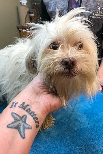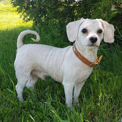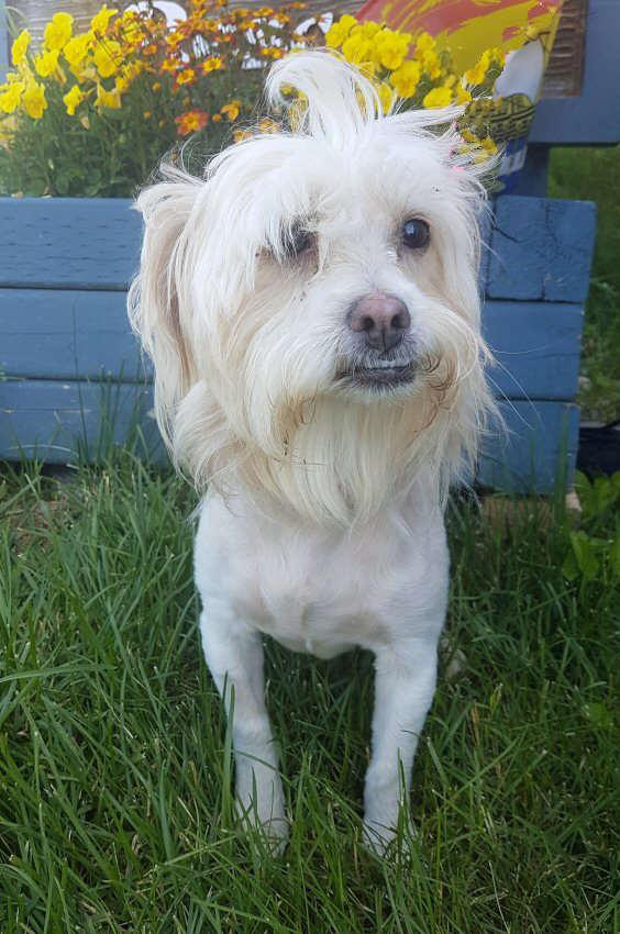 Pixie came to us on June 21, 2019 from Woodstock through the NB SPCA. Pixie had a bad under bite, very long nails, a bad skin infection on her belly, infected teeth and urine scald. Her care and living conditions had not been good, but all that changed today. Pixie was born about October 2, 2014 and she is a Maltese mixed breed.Pixie was bathed, shaved, her nails were trimmed, her teeth were cared for and she was placed on medication to help her overcome her medical problems. She is now doing very well as a result of this medical care, good nutritious food and lots of lovin' by her foster family. She is loving, affectionate, likes other dogs and appears to have no issues with cats, either!On July 20, 2019, Pixie was excited to meet her new family who had traveled all the way from Moncton to meet her. Congratulations, Pixie - please send photos soon. We are SO happy for you!
