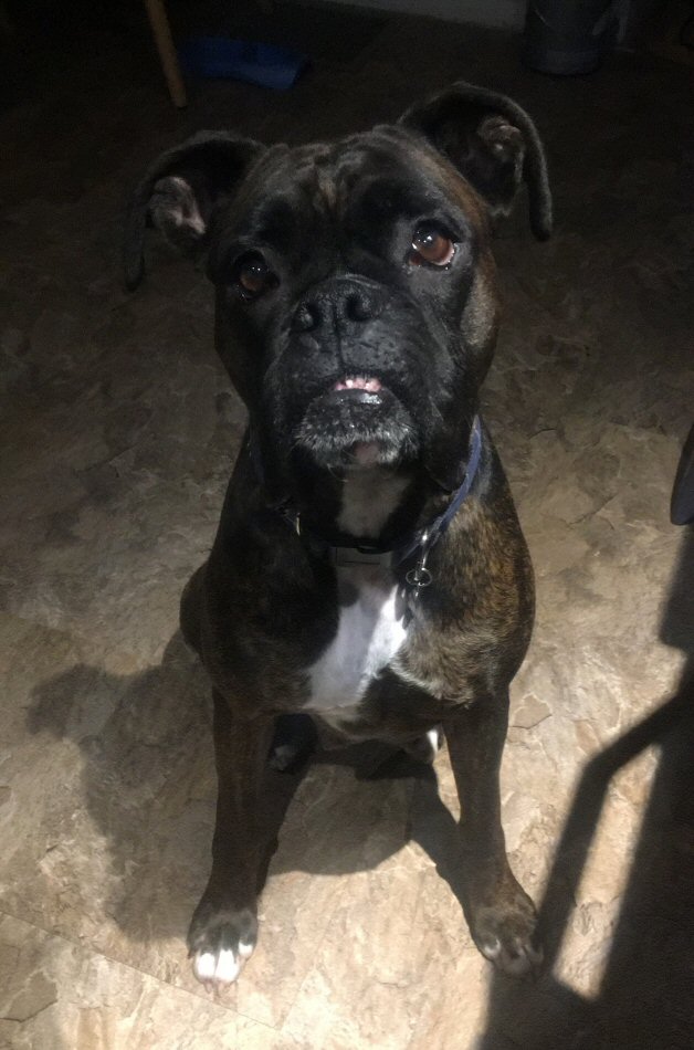 Smalls is a cute little boxer mix who was born on August 13, 2019 to an unspayed dog named Angela. These little guys needed a home and were fortunate to have someone in the Douglas area to foster them until they were old enough to go to homes. On October 10, 2019, Smalls was adopted to a home in Fredericton where he'll live the life he deserves. Congratulations, Smalls! Send us photos of you and your new family!