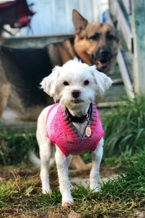 Pixie came to us on June 21, 2019 from Woodstock through the NB SPCA. Pixie had a bad under bite, very long nails, a bad skin infection on her belly, infected teeth and urine scald. Her care and living conditions had not been good, but all that changed today. Pixie was born about October 2, 2014 and she is a Maltese mixed breed.Pixie was bathed, shaved, her nails were trimmed, her teeth were cared for and she was placed on medication to help her overcome her medical problems. She is now doing very well as a result of this medical care, good nutritious food and lots of lovin' by her foster family. She is loving, affectionate, likes other dogs and appears to have no issues with cats, either!On July 20, 2019, Pixie was excited to meet her new family who had traveled all the way from Moncton to meet her. Congratulations, Pixie - please send photos soon. We are SO happy for you! | |