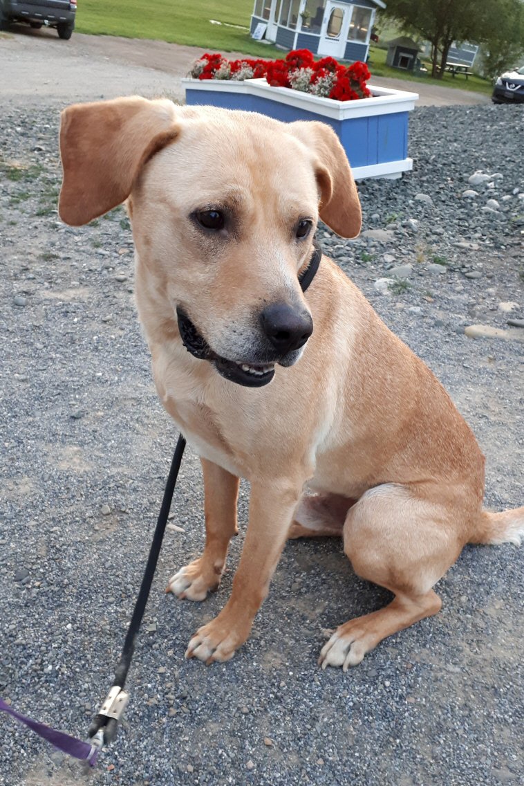 Taggart came to us on August 3, 2019 when he was abandoned in Riverbank by a man who refused to provide any information regarding his background. We have learned from personal experience in the short time that we've known him that he is a beautiful boy who knows commands such as "Sit," "Come," "Shake," etc and is very loving. He likes to be with humans and loves to give and receive affection. He wants to give all his love the moment he sees a human and it appears that he will be a very good family dog, regardless of size or age of his new family members.Taggart was born about August 3, 2018 and is a Lab mix. He was unneutered when he came to us, but that has been rectified and he will be fully vaccinated. He loves everyone, so will easily fit into almost any family who is looking for "a good dog!" because that's definitely him!!On August 9, 2019, Taggart was elated when a couple he had met previously returned to take him home to be part of their family. Now known as Tucker, we know he'll have the best of everything for the rest of his life. He now lives in Perth-Andover. Congratulations, Tucker. You definitely hit the jackpot.