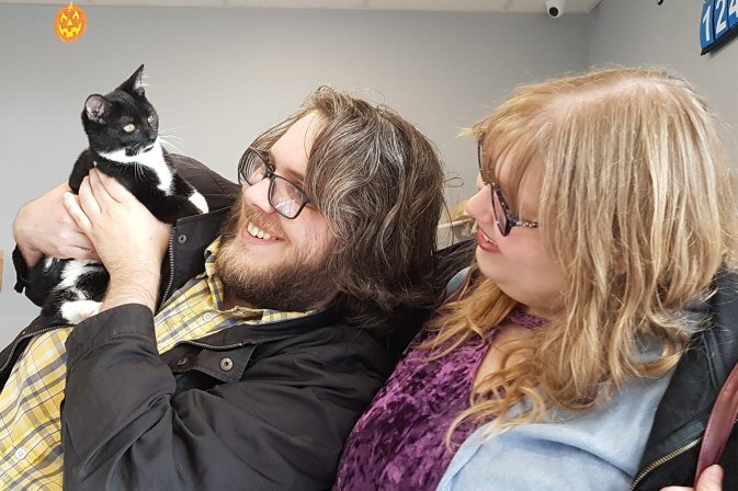 Jock came to us on October 11, 2019 through the NB SPCA. He was born about October 11, 2018 and, along with more than a dozen other cats, was living in a building that was about to be demolished. He had fleas and ear mites but was otherwise relatively healthy.Jock was neutered and completed his vaccine protocol. As of October 26, 2019, he was fostered by a kind DunRoamin's supporter, along with his friends Hicks and Jock, for which he was very grateful. Thanks, Ariel! As of January 11, 2020, he stayed with his friends at The Purrfect Cup Cat Cafe in Two Nations Crossing, Fredericton. Please drop in and check it out - it's a wonderful place for humans and cats alike! We know you'll love it as much as we and our cats do!On January 25, 2020, Jock and his best friend Hicks (see above) were adopted by a very nice lady from Fredericton where they'll be spoiled beyond their wildest dreams forever after! Congratulations, Jock! Send photos!!