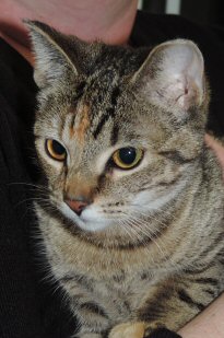 Jann came back to us on February 18, 2015. She had originally come to DunRoamin' on October 13, 2015 when she and her sister and two brothers were left in a box and had to be live-trapped because they were so scared. Other than having ticks, all were healthy. Jann was born about August 4, 2015 and was the last of her litter to be adopted, which happened on November 21, 2015.Unfortunately, Jann's family's circumstances changed and they were no longer able to keep her so she came back to us, as is our policy. We'll find her a new family. Jann is quiet but very loving and affectionate. She plays and sleeps with her friends Joy, Kenya, Trickle and Chyler and is very talkative - she'll stare you right in the eye and tell you a story! She also loves to purr!On March 13, 2016, a young lady who had met Jann the previous week returned to invite her to join her family. Jann now lives near Avondale with several other ex-DunRoamin' cats who have the best home possible! Congratulations, Jann! Write soon! | |