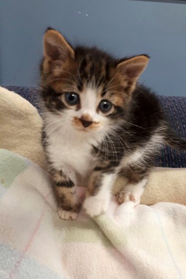 Scott and his sister Tayla (see below) were found on the road in Hartland on the afternoon of June 9, 2018 and were brought to DunRoamin' for help. Examination by their new vet revealed that they had been born about April 16, 2018.Scott and Tayla weighed only 14 ounces upon their arrival. They were hungry but too scared to eat. They were fed by syringe every few hours throughout the next two days and nights until they finally became comfortable enough to eat some Kitten Milk Replacer (KMR) on their own. They also had to be stimulated to pee and poop every few hours, as their mother would have done for them had she been with them.Scott and Tayla were fostered by a vet tech to ensure they got the medical care they required while they acclimatized to their new environment and learned to eat, pee and poop appropriately. They were the exact same weight and are very similar in appearance, with Scott having a slight tan tint to the fur on his face. They'd like to stay together if at all possible - they're the only family each other has right now until that perfect new family asks them to join theirs. They can't wait!On December 19, 2018, Scott got the best news of his young life. Both he and his sister Tayla were invited to join a family in Woodstock where they'll be loved beyond words by their two new adult humans and two young children who love them already! As an added bonus, their new sister is DunRoamin's Arizona - a very beautiful girl! Congratulations to everyone! Merry Christmas!! Thanks to your new family for keeping you both together!