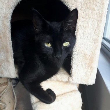 Zelda came to us on March 2, 2020 from a home where she had shown up as a stray. The homeowners did their very best to care for her, but with their own eight cats, they were a bit overwhelmed. Zelda was emaciated to the point that each rib and bone in her spine was easily felt. She had a huge open wound on her side and another injury on her leg was very much infected. Zelda immediately began intensive care by her new vet. She was placed on antibiotics for infection and received a nutritious diet to help her gain some weight. She was soon doing well and ready for a new home now. Her vaccines are all up to date, she tested negative for FIV and FeLV and she's ready for a family! She stayed with her friends at The Purrfect Cup in Fredericton and enjoyed meeting lots of nice people - come visit, they're wonderful there! You'll love the coffee, treats, staff, and of course, the cats, too!!On May 22, 2020, Zelda was SOOO excited to leave for her new home with a very nice young lady who had fallen head over heals for her. Zelda was happy to reciprocate and now lives in Fredericton with her new family. Don't forget to send photos both to us and to your Purrfect Cup family, Zelda - we'll all miss you!