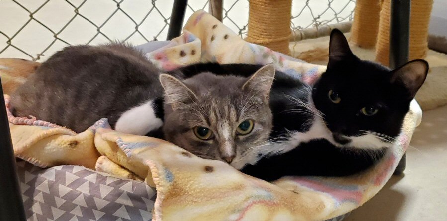 Corazon and her brother Orville (see above) came to DunRoamin' on January 29, 2020 from a colony in the Woodstock area. They were born about July 19, 2019. Thanks to the Woodstock Community Cat Program, these two, along with several dozen other unowned cats, were spayed/neutered and had already received a rabies vaccine. As most of the other cats were feral, they went to barns, but Orville and Corazon were tame and therefore requested to be put up for adoption so they could live in a home with a loving family. How could we say no?? We provided the remainder of their vaccines, FIV and FeLV tests and they were soon ready to be rehomed. They have never been separated, so we'd like to adopt them together so they can stay as a family. They really do love each other!On February 29, 2020, Orville and Corazon were invited to stay at a foster home in Burton to become more ready to live in a family situation. Thanks, Kelleys! You are very much appreciated!Thanks to Mandy at the Woodstock Town Office for setting up, organizing, trapping, transporting and securing safe homes for all these guys. You are amazing!! Please contact the town office at 325-4600 if you would like to help a colony of unowned cats within the Woodstock town limit.On April 16, 2020, Corazon and her brother Orville went to the Oromocto SPCA to find a home. Thanks so very much to the Kelley family in Burton for taking such good care of them for the past six weeks and ensuring they felt comfortable, safe and loved. It is everyone's wish that they can stay together - they're family. Congratulations, Corazon! Thanks to the Oromocto SPCA for helping to find you a home! Update: On April 17, 2020, we learned that Corazon and Orville are adopted together already! Thanks to Tracey and her staff for finding them a great home and keeping them together!