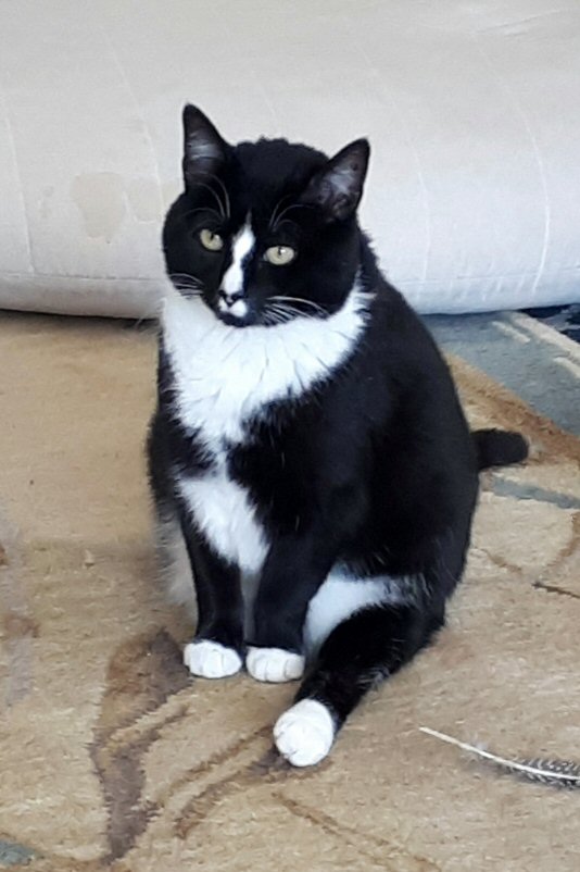 Schrodinger came to DunRoamin' from the Upper Brighton area on March 18, 2020. He had come to an area where birds were being fed and he was hungry enough to be grateful even for a little bird seed to put in his belly. Schrodinger was born about March 18, 2016, so was about four years old.Examination by his new vet revealed that he had a bad case of ear mites, tartar on his back teeth, a scar on his nose and right ear and a large healing scar on his right cheek. He also displayed a mild/intermittent heart murmur, but that may just be due to the stress and his recent lifestyle. It's cold out there, shelter may be hard to find and bird food is not very nutritious for cats!Schrodinger was initially a bit scared (who wouldn't be?) but with lots of human interaction, he is now doing so much better. He is now neutered and has completed his vaccine protocol. He tested negative for FIV and FeLV. He has a great personality - if he doesn't want to be patted, he lets you know with a swat (no claws), but two seconds later he changes his mind and he's back for some loving! He rotates his ears in a VERY cute way, and he has more personality than can be measured! He will win your heart in NO time!! On May 11, 2020, Schrodinger went to stay with our friends at The Purrfect Cup where he quickly won everyone's heart - or at least their respect! Please stop in and say hello to the staff and cats and enjoy a treat while you're there! They are WONDERFUL!On May 22, 2020, Schrodinger was adopted by a very nice young man from Fredericton who is SO happy to have him as a family member. Schrodinger will live happily ever after! Congratulations, Schrodinger! Send lots of pictures! Thanks, Oliver!