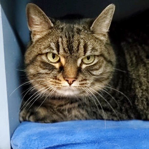 Goose arrived at DunRoamin' on July 27,2019 from Centreville. He had blocked (meaning urine could not leave his body) and was in dire need of medical attention that he would not receive unless accepted by DunRoamin'. He was not in a good state.Goose underwent care at the Florenceville Veterinary Clinic where he was unblocked and prescribed a diet of Royal Canin Urinary S/O food. As long as he eats this diet only, he will never block again - we've had dozens of cats on this diet and have had not a single recurrence. Goose was named after the cat who stole every scene he was in in the Marvel movie, "Captain Marvel." Goose gets along well with other cats, but prefers to be the centre of attention. He loves catnip, cat grass and being petted, but he'll let you know when he's had enough! Goose was born about December 3, 2009 and looks forward to his next healthy, happy ten years! On April 18, 2020, Goose went to stay with friends at the Oromocto SPCA where he hopes to find a home very soon. Thanks to Tracey and her staff for welcoming him!
