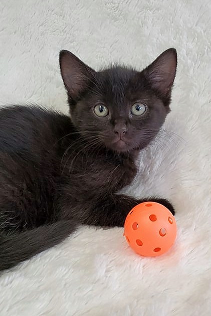 Okie, "Kitbull" and their four siblings came to us on October 27, 2020 from the Bath area. They had been born about September 15, 2020 and had no mother to care for them. They were tiny, had fleas, ear mites, upper respiratory infection and were too young to be away from their mom.With much love, care and medical attention, they have become healthy, happy, playful, loving little fur balls. They had a hard time initially, had to be fed by syringe and provided with much-needed medication in order to gain wait and thrive, but with all the love and attention they received, they are now all healthy and ready to go to homes shortly before Christmas.They will be spayed/neutered, fully vaccinated, treated for all parasites and tested for Feline Leukemia and Feline Immunodeficiency Virus. They look forward to that new, wonderful home that they hope will be in their future!On December 4, 2020, a very nice couple travelled for four hours to meet them and determine if they would like to join their family. Both Kitbull and his sister Okie were very excited to have been chosen, and to learn that they would be together forever! Thanks to your new family! Please send lots of photos and stay in touch! | |