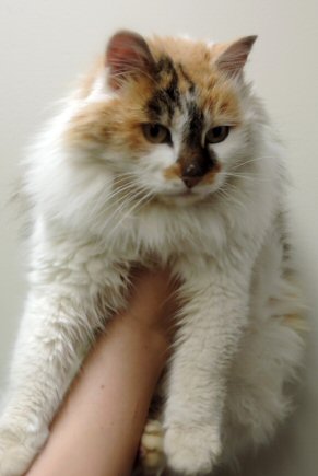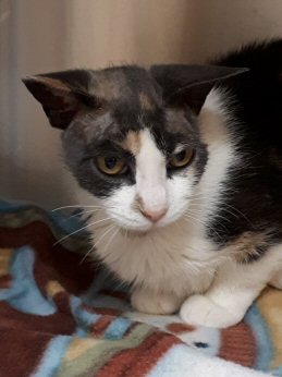 Everleigh came to us on October 23, 2019 from Johnville where she had been a barn cat who had lost part of her left hind leg - we're not sure how that happened, but it was a traumatic amputation. Her owners were unable to provide for medical care or take her in. Everleigh was born about April 18, 2016.Everleigh required the remaining part of her leg to be amputated which took place the week of December 9, 2019. She has recovered well and has a great attitude. She is a beautiful frosted calico who can't wait for a home of her own. She only has three legs, but that diminishes her absolutely NONE! She is a beauty who is waiting for that family who will love her for all she is worth - and that's a lot!!As of December 29, 2019, Everleigh is doing very well. She gets along fine with only three legs and can walk, play, jump and run with the best of them! She loves people to make a fuss over her, although it takes her a minute to warm up to them. But if you rub her belly, she's all yours and will purr, roll and knead as long as you'll stay! She loves attention and is hoping for a home soon where a three-legged kitty will be welcome. She has been in a wonderful foster home in Grand Falls since January 23, 2020 where she was spoiled rotten and did very well! They have other cats, and although she did not interact frequently, she wasn't upset with them, either!On February 23, 2020, Everleigh's foster mom reports that she prefers an open litter box (as opposed to covered ones) and she loves to petted on her belly or the side of her chin. She is unsure if petted gently - a firm hand is preferred! She loves to relax beside you and isn't yet interested in toys, but we're sure that will come once she learns what they are and what they are for. She gets comfortable in one spot and tends to stay there, but will let you pick her up or pet her. She loves Temptations and will eat out of your hand once she gets her pets in, and will self-pet while they are in your hand. She is quite the sweetheart!!On February 29, 2020, Everleigh met a very nice lady from Fredericton who fell in love with her beauty and shy personality. She will reside happily in her new home with an older shy cat - we're sure they'll become fast friends. Thanks to this family for giving this beautiful little girl a loving furever home! Send pictures, Everleigh! We'll all miss you, especially your foster family!