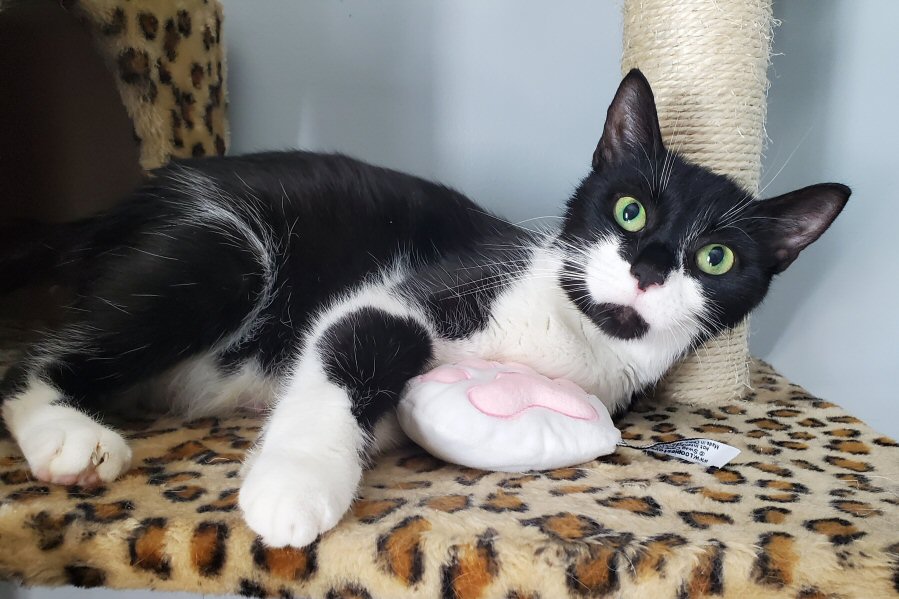Boseman came to us on September 1, 2020 from Woodstock, NB, where he had been found all alone on the side of the road. He was emaciated, dehydrated and had worms, but he was still a feisty little guy - that's probably why he had survived so long on his own. He was born about July 1, 2020.Boseman is full of love, purrs, cuddles and personality. He eagerly leaps from his kennel into your arms when the door is opened and he can head butt and purr with the best of them. He is playful and sweet - just ask him! Boseman stayed in a foster home where his foster mom described him as such a little bundle of energy - he never stops!! He has a friendly personality with a bit of spunk and when he eventually slows down, he becomes a bit of a cuddle bug. He occasionally sneaks under the blankets at night, but that doesn't mean he is not in attack mode! He'll get you if you move around! He is more of a grazer (eats a small amount several times throughout the day/night). He is honoured to be named after Chadwick Boseman - the actor who played Marvel's Black Panther who recently passed away after a battle with cancer. Little Boseman will quietly honour his name and live up to the kindness and huge heart of his namesake.On October 26, 2020, Boseman went to spend some time with his friends (and ours!) at The Purrfect Cup in Fredericton where he hoped to meet the loves of his life and join them in their home forever! Please drop in for some excellent food, coffee, staff and some pretty amazing cats! You'll love it there!On November 3, 2020, we learned that Boseman had been welcomed into a home in Oromoto where he will be the new sibling of Snowflake, aka Hail who just turned three a couple of days ago! What a nice birthday present! Congratulations to all! Don't forget to stay in touch, like Snowflake does! And thank your mom for everything she does for us - she's pretty amazing! | |