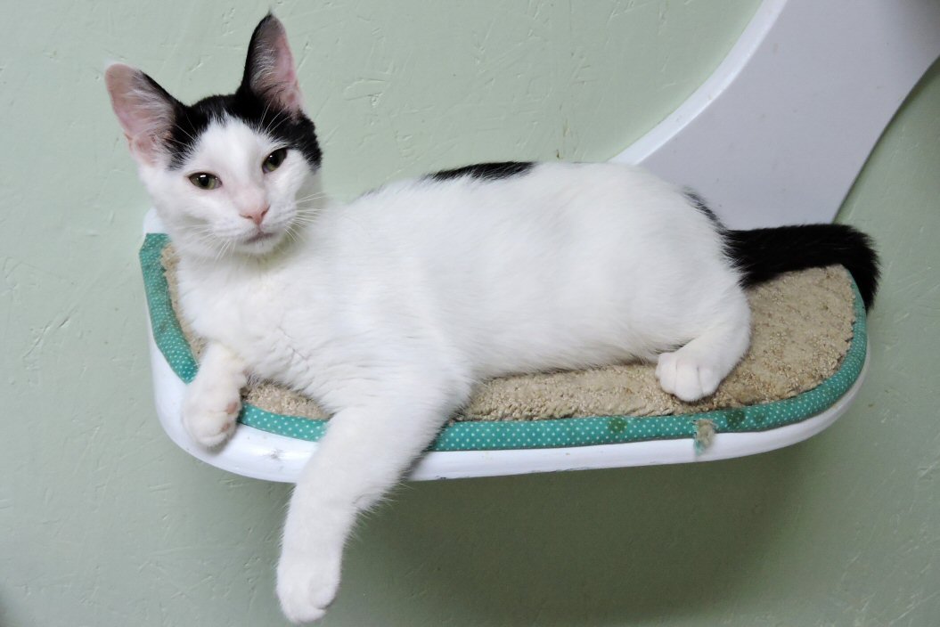Butler came to us on January 31, 2019 from the NB SPCA. He was born about July 31, 2017, so was only about a year and a half old. Because Butler came from a location where Feline Leukemia had been found in other cats, he was segregated and retested on March 18, 2019, at which time he tested negative. Congratulations on a completely clean bill of health! Butler has a cute little bend in his tail - come check him out! We believe Butler is a sibling to Hollister (see below).Butler is a very nice little boy. It took him only a short time to realize that he was with friends and loves to be patted. If you're looking for a sweet, kind, affectionate little boy, he's your kitty! Please come meet him!On March 30, 2020, Butler moved with his brother Hollister to the Oromocto SPCA where he will find a loving home very quickly - they have lots of people looking for handsome, kind, loving little boys. Congratulations, Butler! Tell Tracey thanks again for her help!