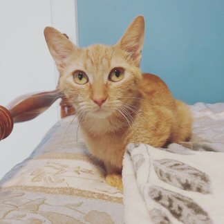 Hazard came to us on October 6, 2020, from Perth-Andover where he had been adopted in 2018. Unfortunately, his family could no longer keep him, so as per our adoption contract, he came back to us.Hazard originally came to us on November 14, 2017 when he was found on a porch in Glassville. He had upper respiratory infection, fleas and a fracture of the right femur of his hind leg. He may experience a bit of lameness or arthritis when he's older - we all would! Hazard was a little timid at first, but he's a really nice boy who is happy to have lots of love and attention from our staff, but he'd really love to be back in a home with a family. He was born about August 10, 2017 and is a beautiful orange tabby - his markings are gorgeous!!Hazard is fully up to date on his vaccines and looks forward to joining a loving household of human servants! He is a sweet, kind and gentle little boy who looks forward to having a permanent family.On November 26, 2020, Hazard was very happy to meet his new mother. He rubbed against her and gazed adoringly - he knew she was the one immediately! Congratulations, Hazard, on your new home in Newburg. Please don't forget to send lots of photos of you and your new family! | |
